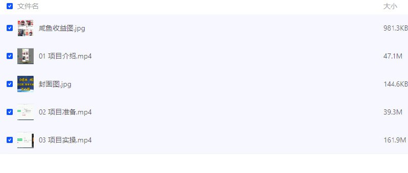 ├── 01 项目介绍.mp4 47.13M ├── 02 项目准备.mp4 39.35M ├── 03 项目实操.mp4 161.94M ├── 封面图.jpg 0.14M └── 咸鱼收益图.jpg 0.96M